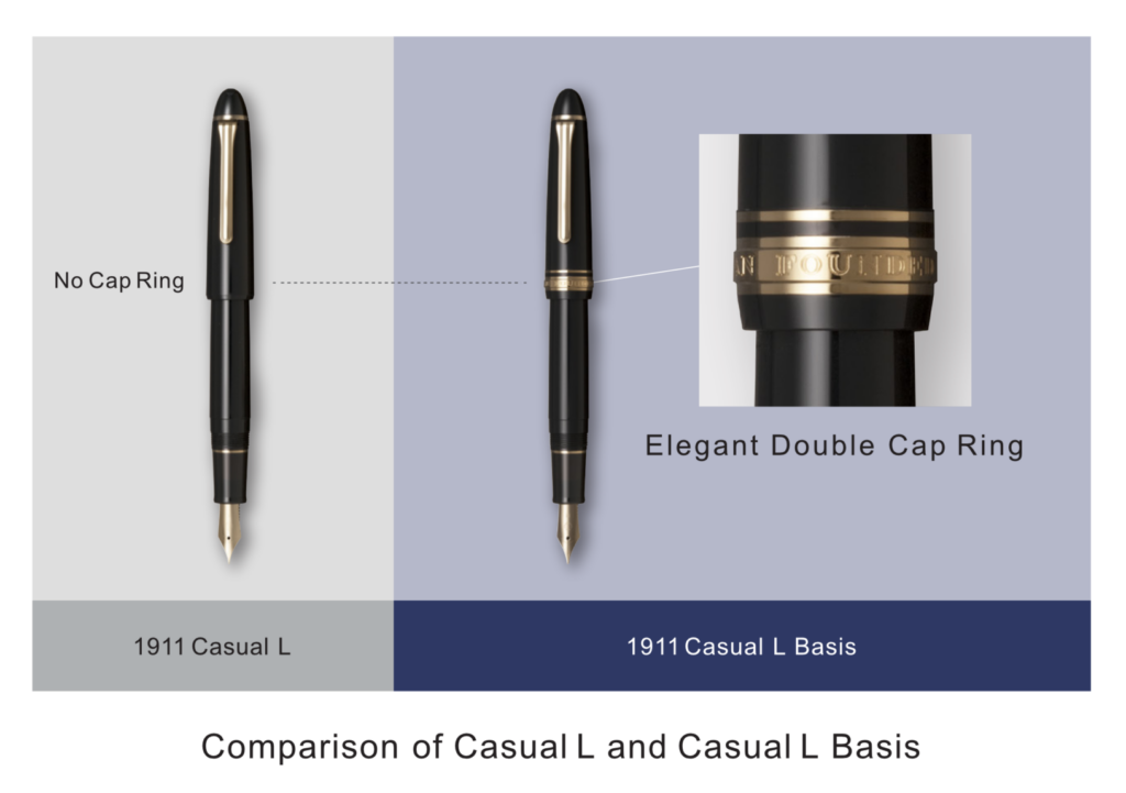 The 1911 Casual L Stable Gold Trim Fountain Pens feature